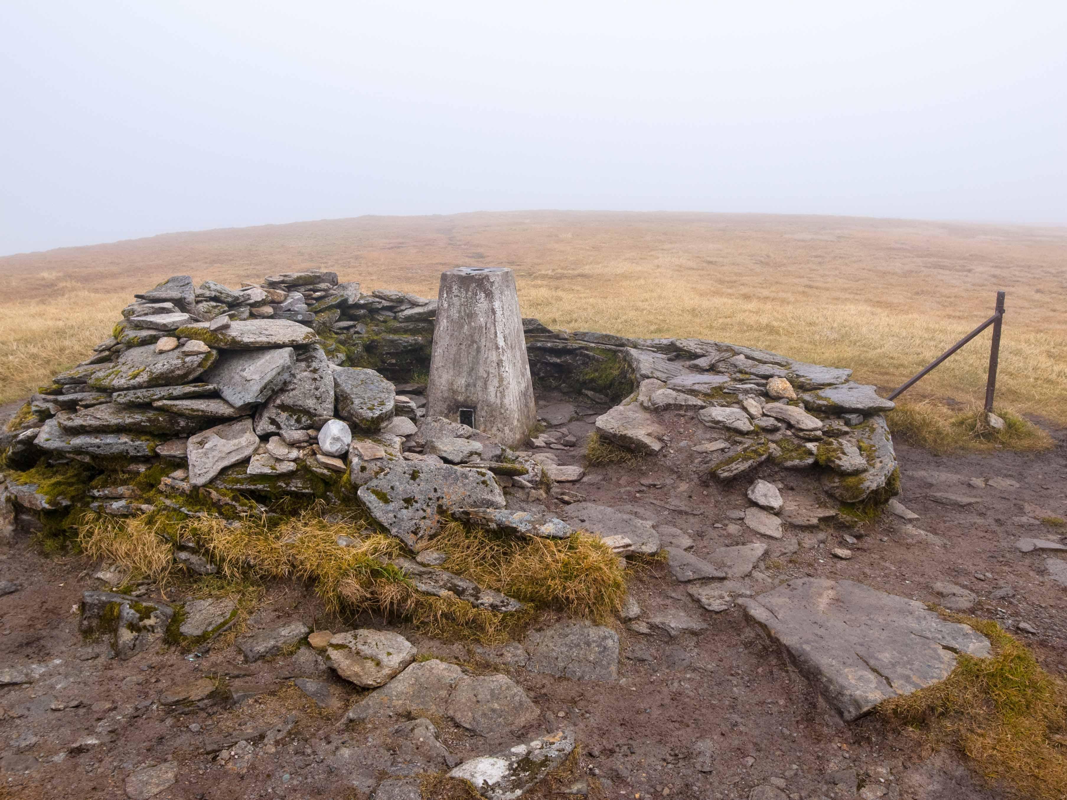 #6: it is noted that much of the largely smooth, vegetation covered regolith mantling the summit and upper slopes, predates the last glacial maximum, which would have been subjected to prolonged periods of freeze/thaw conditions as it protruded above the surrounding ice. This resulted in sever weathering of the pelites and semipelites, in which a wide variety of geomorphological features subsequently formed in the weathered product. The photograph shows the trig point on Glas Leathas Mor surrounded by soil exposed by erosion. These soils seem particularly well suited to produce a wide range of periglacial landforms. These include those formed during the the Lateglacial (and as such are often relict features, i.e. no longer actively evolving) as well as those formed and remaining active during the Holocene.