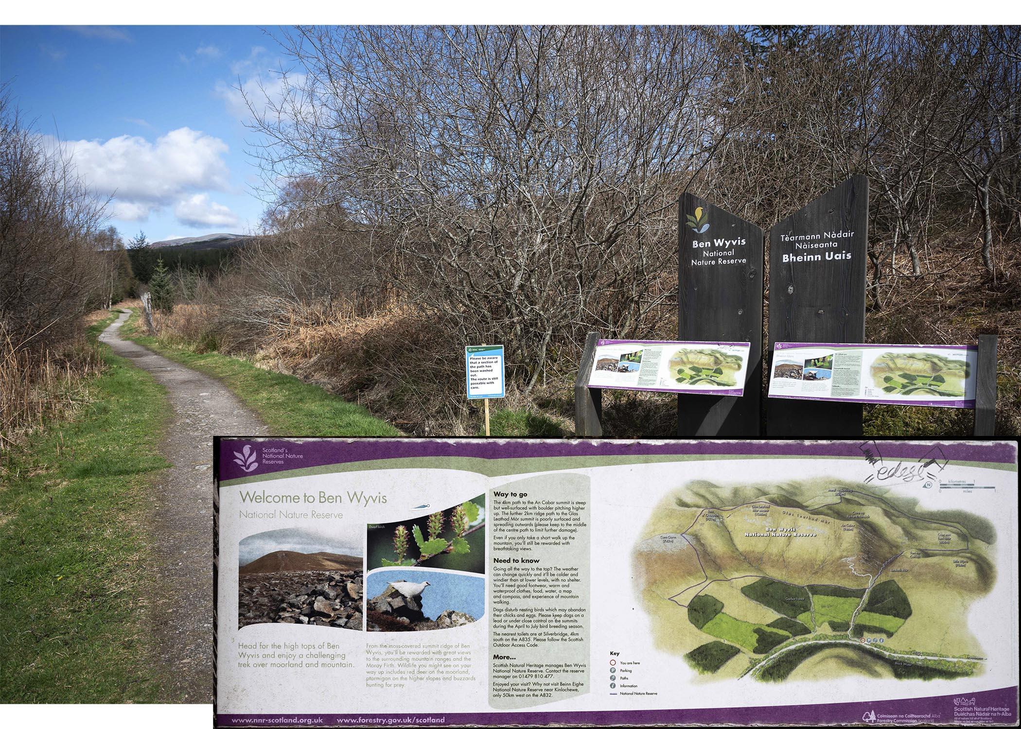 #3: the walking path extending from the Forestry and Land Scotland's carpark at the edge of the Garbat Forest. The boundary of the Ben Wyvis National Nature Reserve are shown on the inset map. However, it should be noted that the GCR/SSSI boundary extends beyond those shown for the NNR .