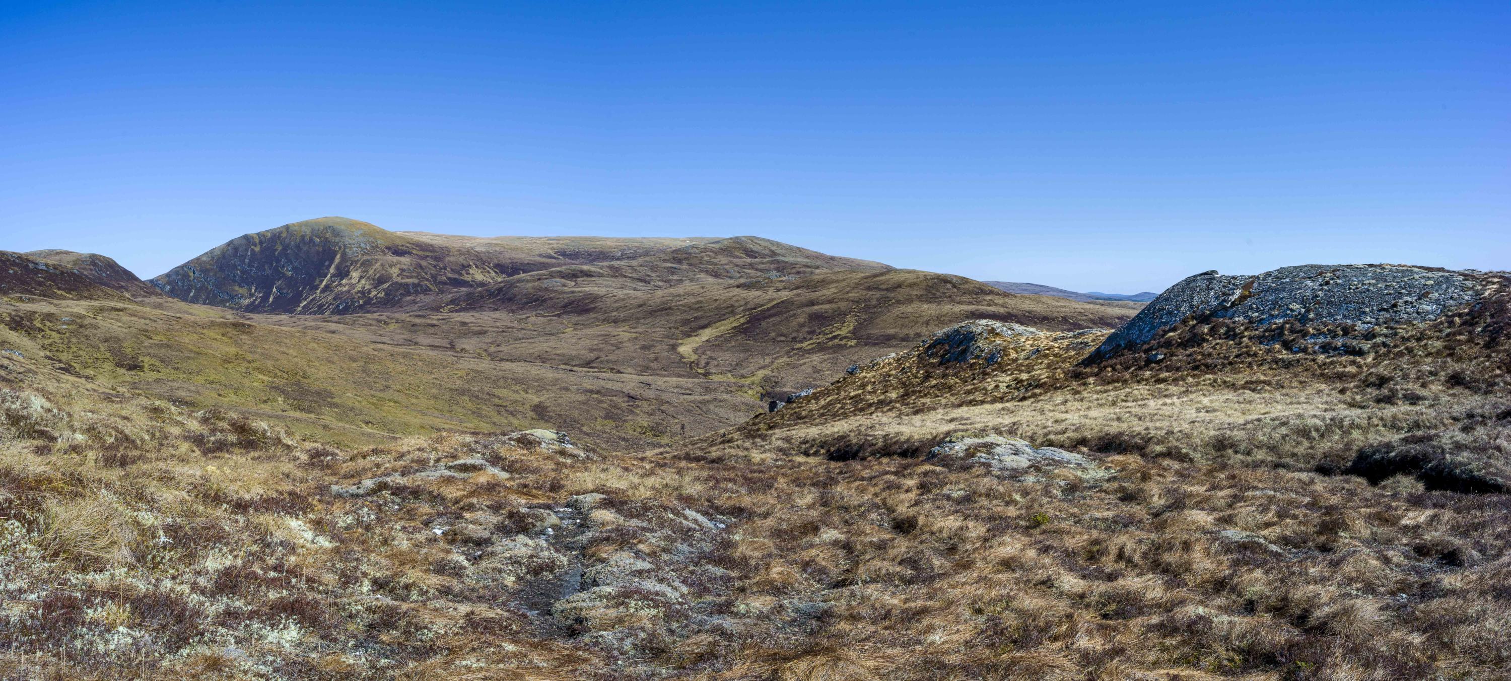 #7: towards the left side of the image, the 946m summit of An Caber and the valley of Bealach Mor beneath mark the south western extent of the site, with the Ben Wyvis plateau rising to1046m running away along the horizon to its right: see also #4 and #6.