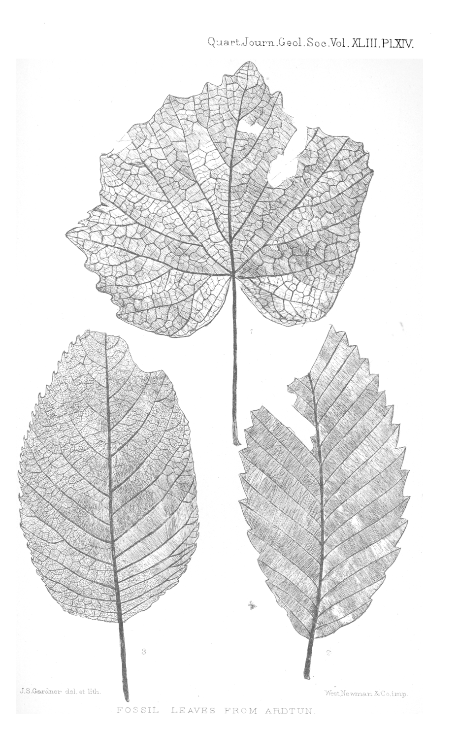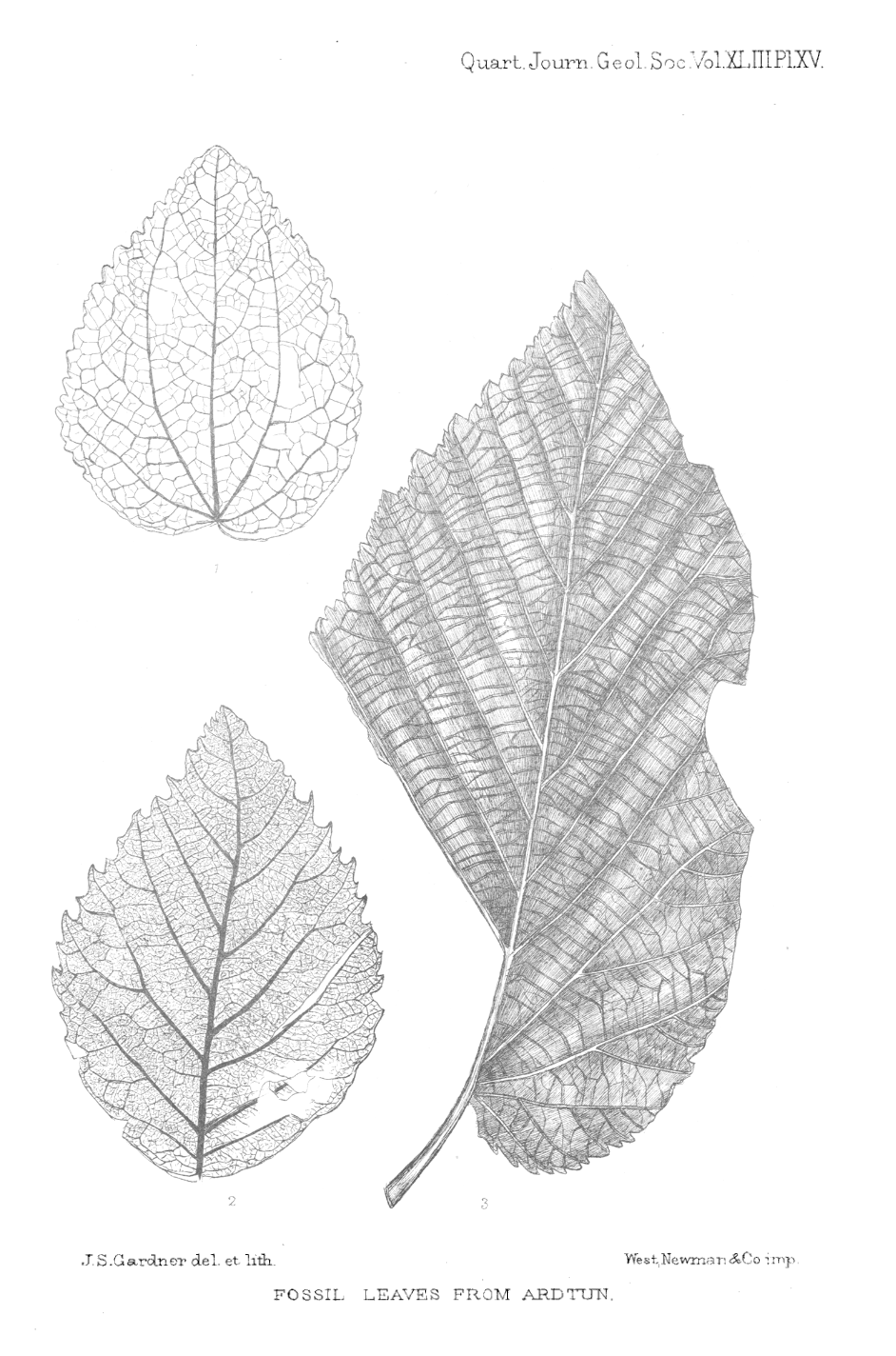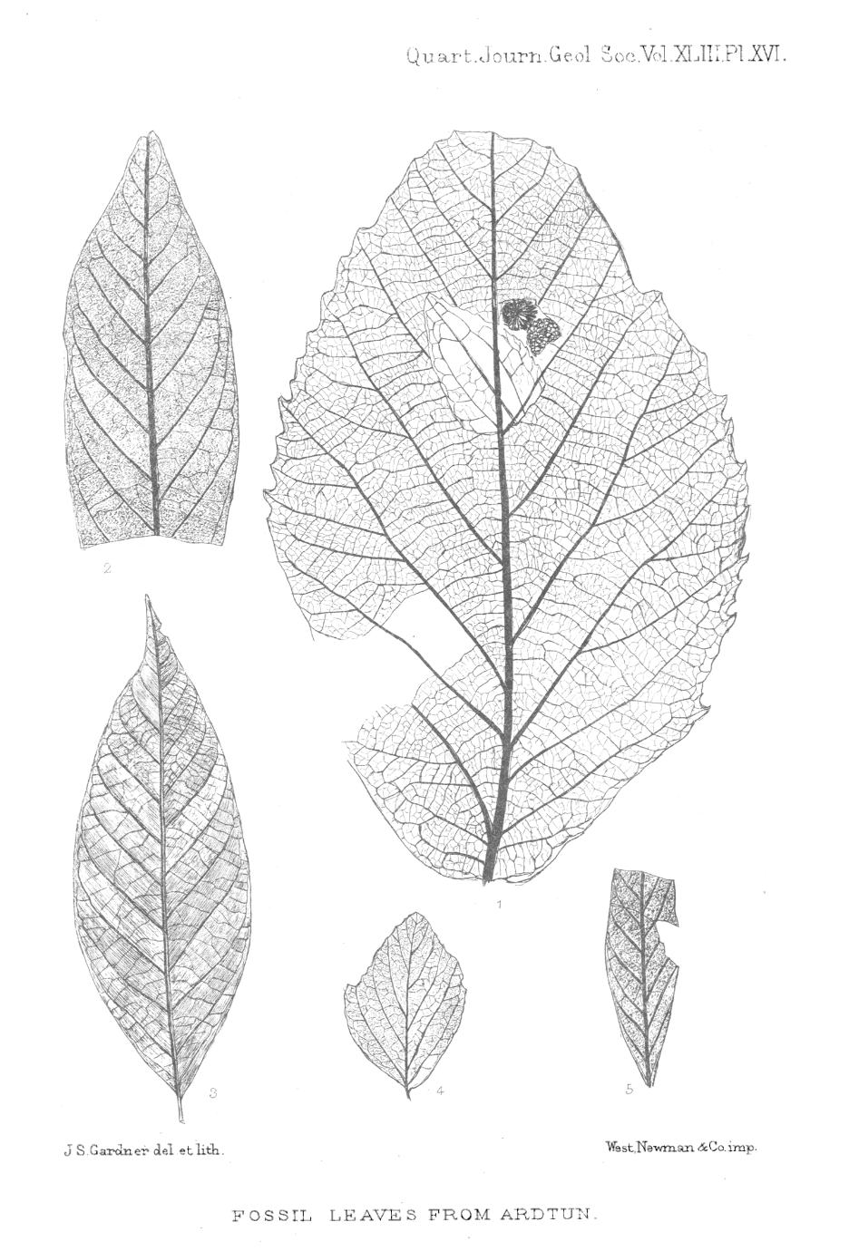 Sketches of fossil leaves from Ardtun Leaf Bed, in Gardner's paper (see link below).