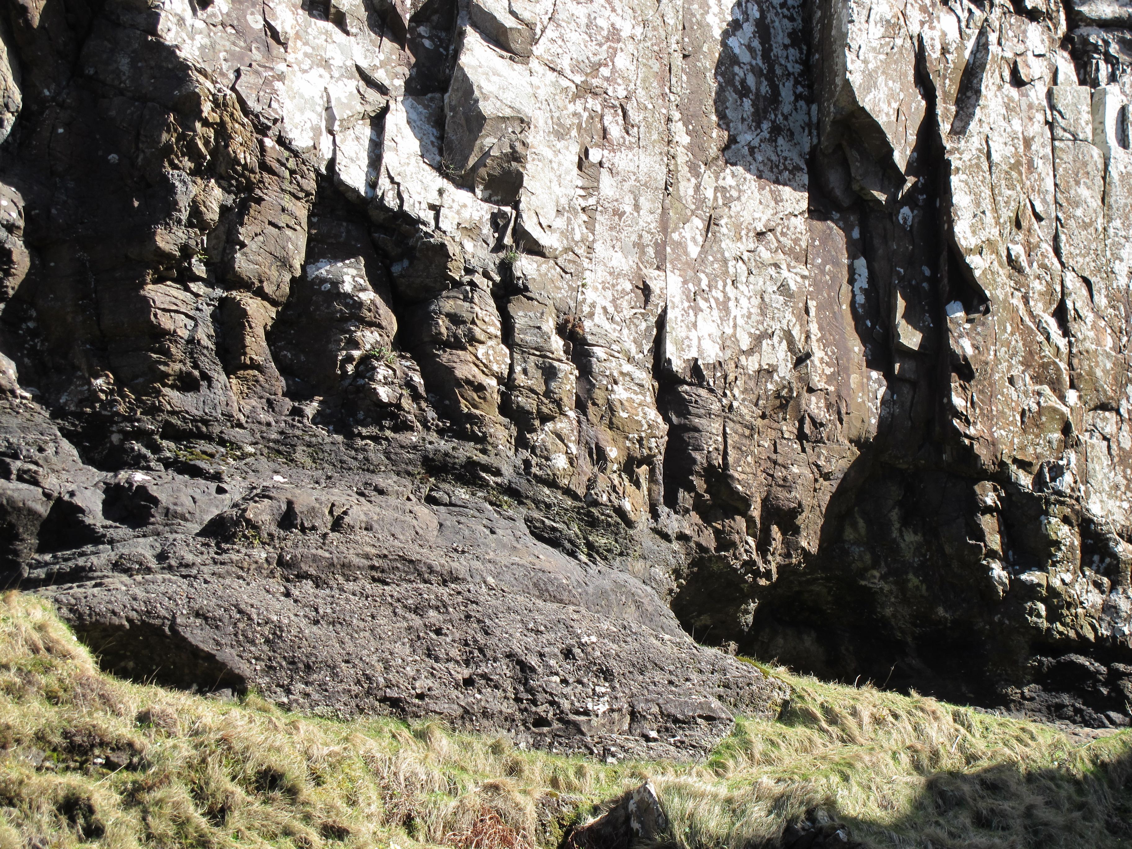 Volcanic plug with agglomerate at top, under the leaf beds at Ardtun, at the foot of the gully.