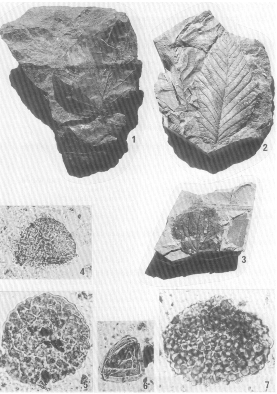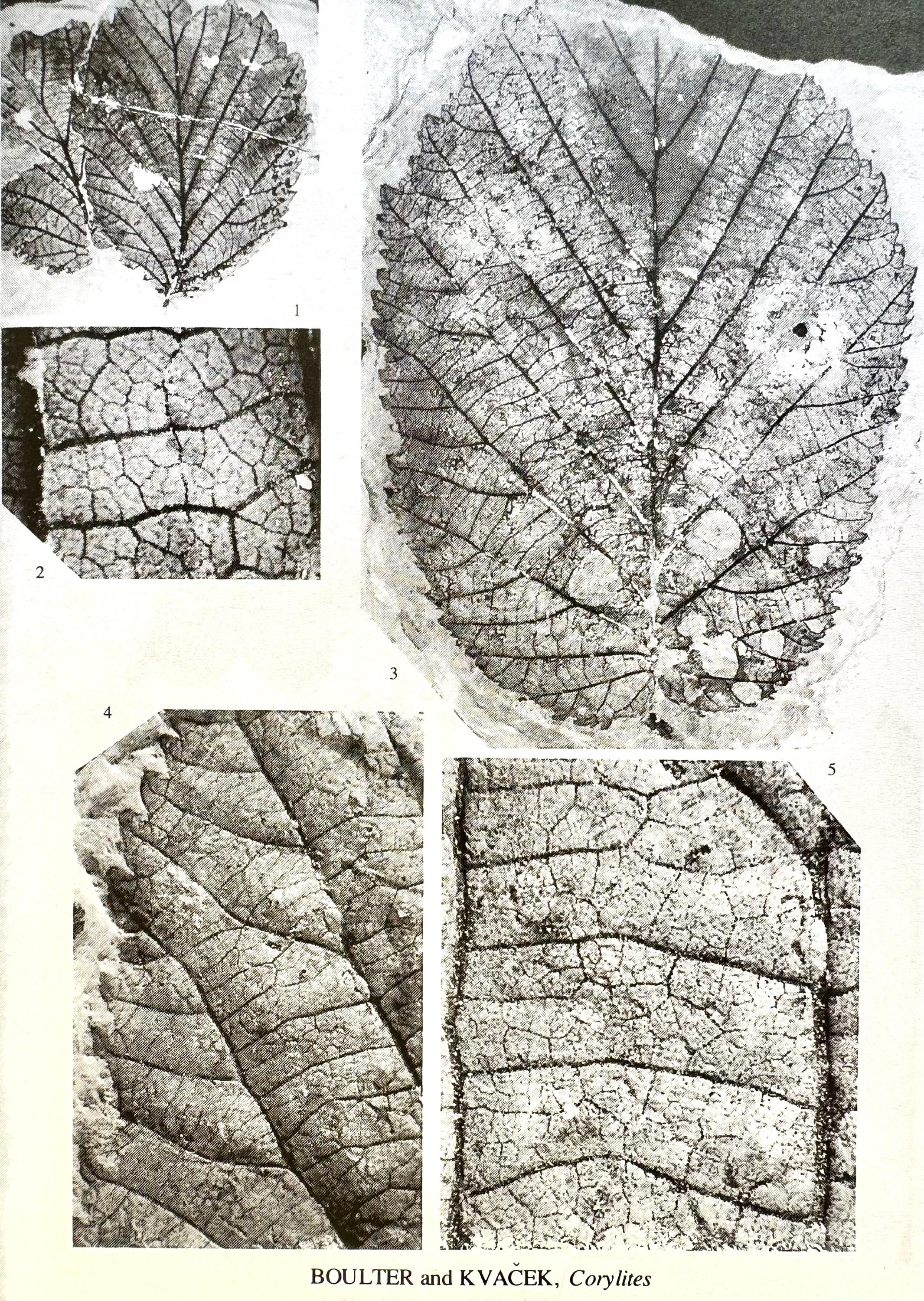 Photographs of Corylites hebridicus from Boulter & Kvaček (1989) paper, as an example of the illustrations from Ardtun beds. No. 3 is about 13 cm long and 9 cm wide.