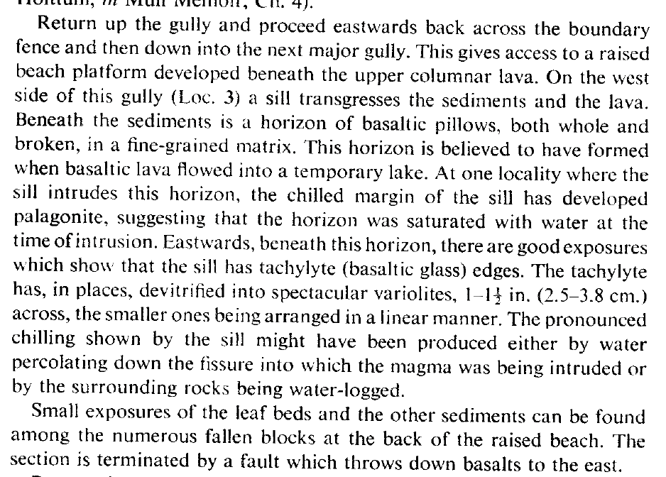 Extract from Skelhorn (1969) Mull guide (GA, out of print) with notes for Locality 3 - sill intruding lavas, etc.