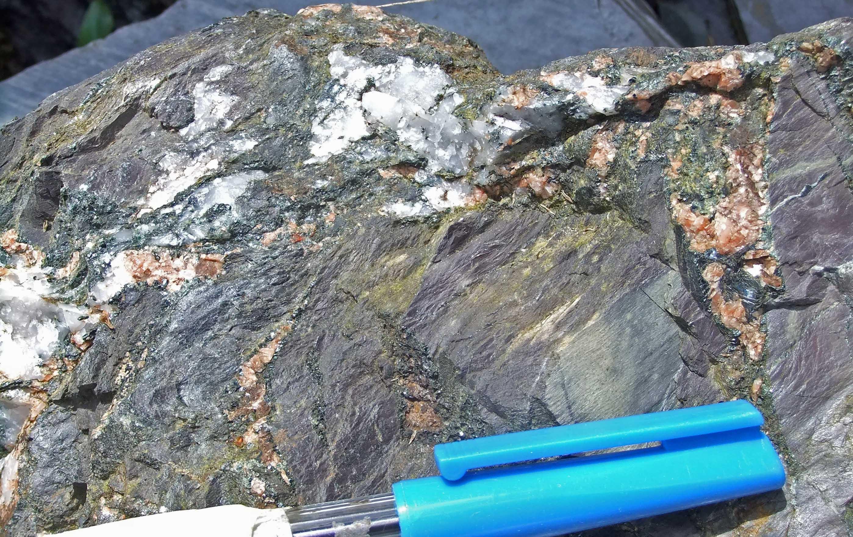 Quartz, feldspar and chlorite mineralisation in a loose block