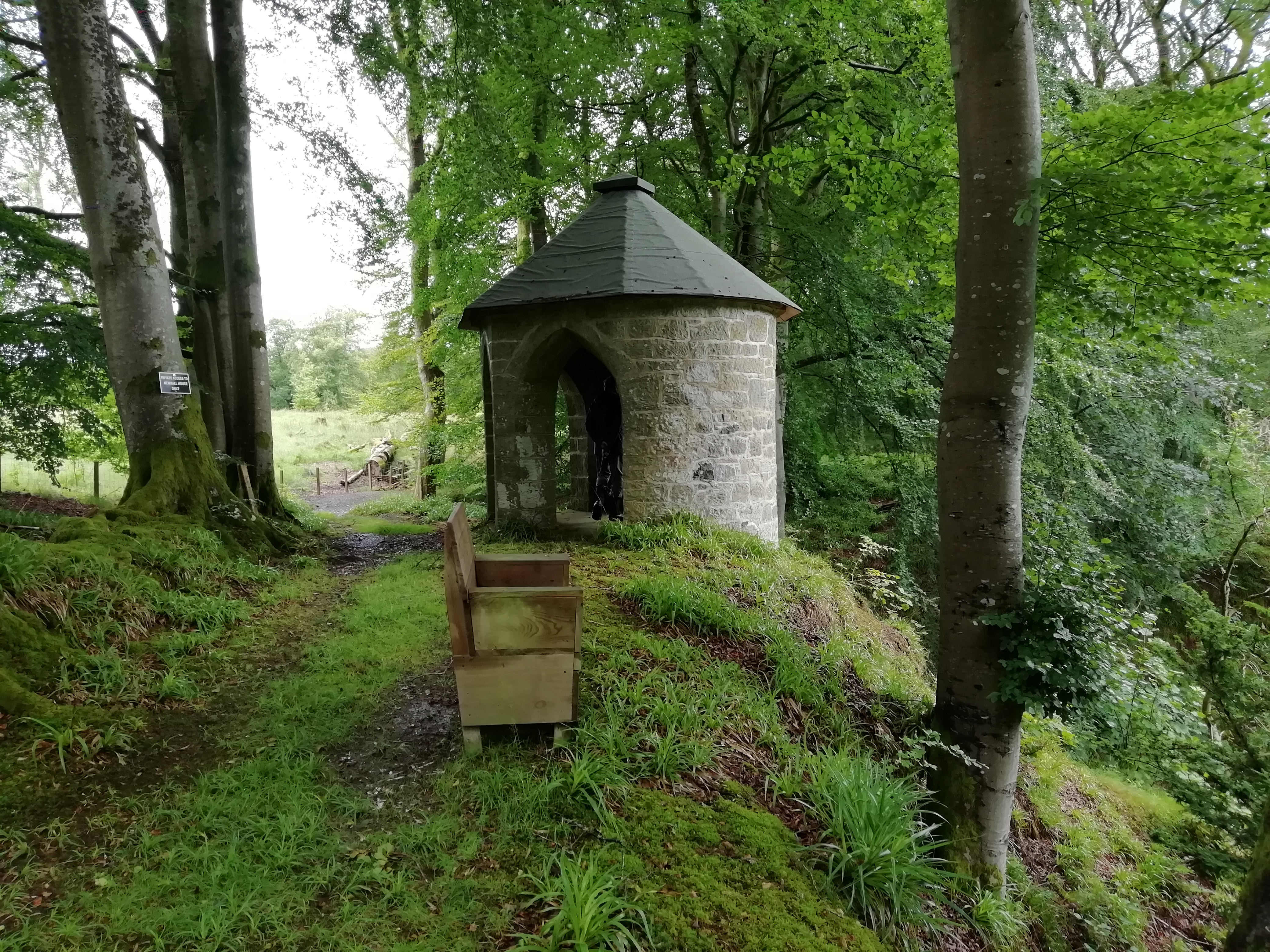 Mary’s Bower, a circular folly built in the late 18th century, stands on the north bank of the gorge.